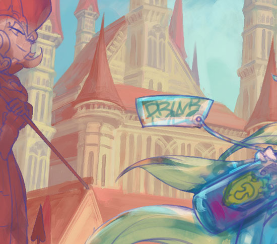 お城を描き込んでいます メイキング イラストのはなしをしよう